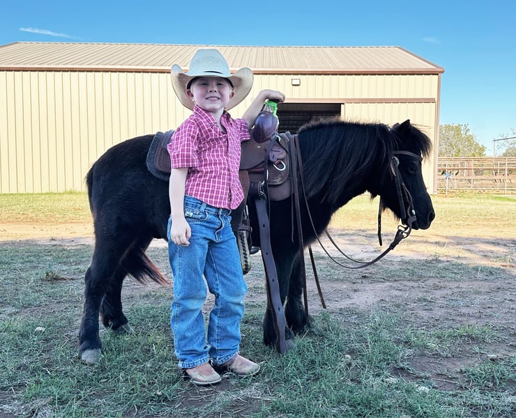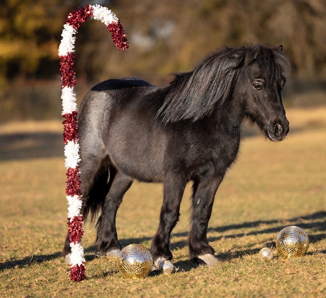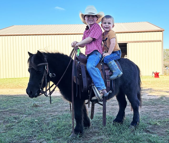 🎁 𝐈𝐍 𝐓𝐈𝐌𝐄 𝐅𝐎𝐑 𝑪𝒉𝒓𝒊𝒔𝒕𝒎𝒂𝒔 🎁 Happening now thru TUESDAY | DECEMBER 9th - Available EXCLUSIVELY on Ponybid's website! For more details and to register visit: www.Ponybid.com CONSIGNOR CONTACT: Wyatt Williams Ponies 817-901-4068 LOCATION: Weatherford, TX BREED: Miniature Pony REGISTERED: No REGISTERED NAME: Shotgun COLOR: Blue Roan HEIGHT: 36" AGE: 8 GENDER: Gelding Shotgun is the cutest fun size mini pony! He is a very well mannered pony with a gentle and sweet personality. He is great for very young kids who are just beginning, all the way up to more experienced kids. He lead lines and rides out on his own. He is friendly and kind natured. My little kids crawl all over him in his stall and he is always gentle and kind. Shotgun has been rode outside and in arenas. We have three kids, all under 8 years old and he has been perfectly safe around all three of them. He has been rode bareback and with a saddle. Shotgun can also pull a cart/wagon. He has been proven safe in multiple places and multiple locations with a lot of noise going on and nothing bothers him. He does whatever is asked of him, including walking, trotting, loping, stopping and turning. My kids can chase cattle up on him, open and close gates, go through the barrel pattern and more. He doesn't get fresh. He stands tied well with good ground manners. He is great to catch in a big pasture, and easy to load and unload in a trailer. He really is the perfect pony as he will lead line, pull a cart, ride off on his own and keep up with the other horses! His feet are in good shape. He is good to shoe. This pony has also seen the sights in cow town in Fort Worth, and traveled to jackpots in Oklahoma and more! He is not bothered by anything. He is not watchy or spooky at all. He is not buddy sour. He will go wherever your little one puts him no matter the experience. He is great for all levels. No bad habits. Good to bathe, load, trim, and catch.