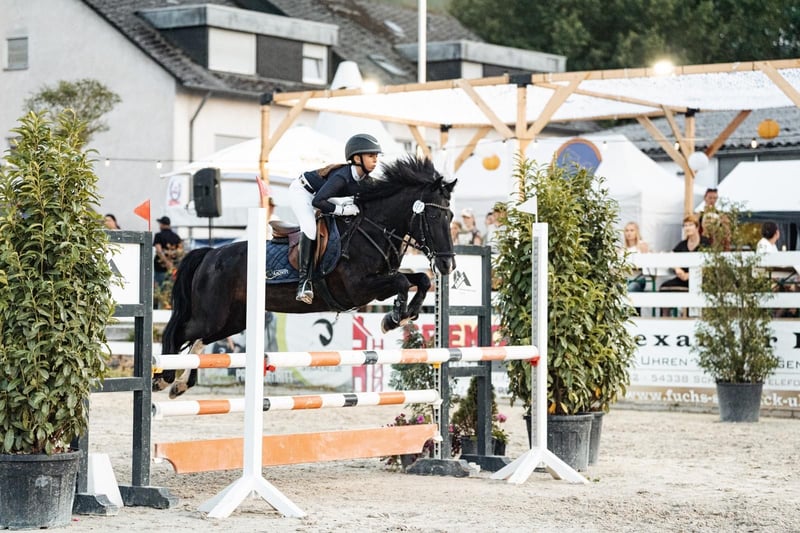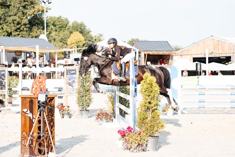*** Inquiries are welcome via WhatsApp at 0176 24297968 *** Manjana is a beautiful and absolutely well-behaved black and white mare. She is currently placed multiple times in A* and A** show jumping with a young girl and is ideally suited for children. Top character, no vices, no illnesses. She is being sold due to the transition to a larger horse.