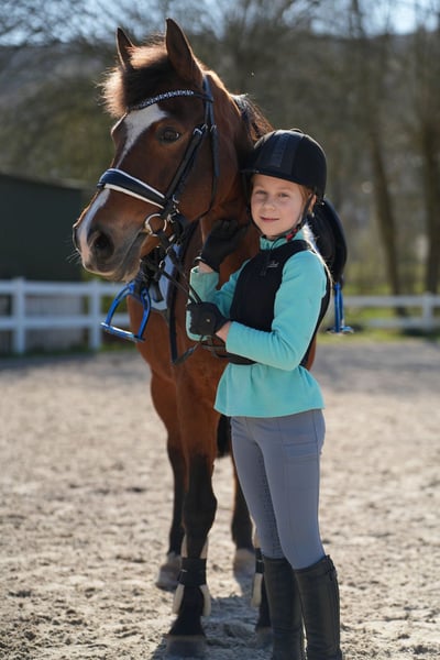 Tolle Stute mit dem passenden Go. Sehr leichtrittig und motiviert, aber immer gut zu Händeln. Egal ob Gelände, Springstunde oder Abteilung, immer brav und willig. Ideales Familienpferd, da auch für Erwachsene geeignet