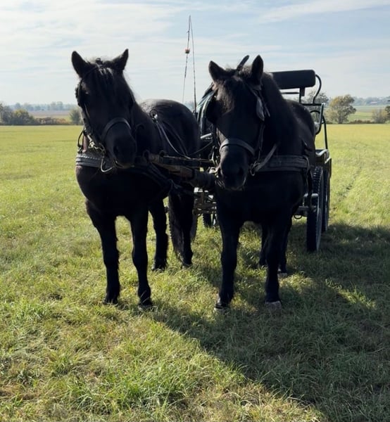 Zum Verkauf steht hier die liebe Bella: sie ist 4 Jahre alt und 125 cm groß und super schön massig gebaut. Deckt also Reiter bis 175 cm ab! Sie ist freizeitmäßig geritten und ebenso ein- und zweispännig Kutsche gefahren. Hat einen super lieben ruhigen Charakter, ist ganz umgänglich und unkompliziert im Umgang. Super für Reitpädagogik oder Therapie geeignet! Die andere schwarze Stute auf den Fotos ist bereits verkauft. Sie ist gesund, hat keine Rehe oder Ekzem, läuft barhuf und kennt Offenstall oder Box und ist verträglich. Gerne kann sie jederzeit besichtigt werden. Weitere Informationen, Fotos und Videos gerne auf Anfrage direkt in WhatsApp.