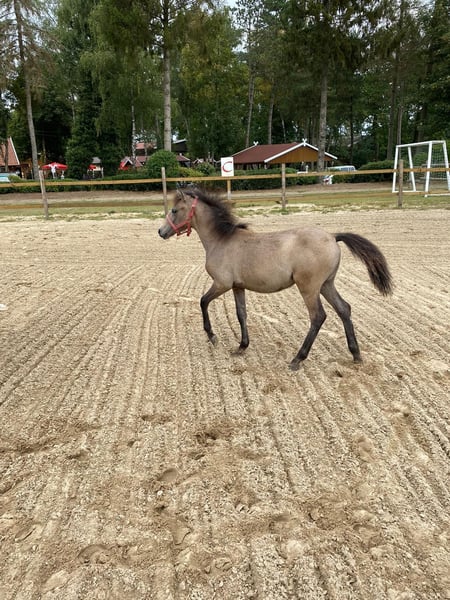 Nituna was born with us and has been integrated into our riding hotel from the very first moment. This means she is familiar with laughing and lively children, dogs, peacocks, and everything else that comes with communal living. After her first six months with her mother and another mare-and-foal team, she was kept in a large herd. There, she naturally found her place and transitioned into her teenage phase in a carefree and stress-free manner. Her current training level includes leading, desensitization exercises, and trail riding. She is already accustomed to saddle and bridle and is familiar with rider weight. Her first rides behind an experienced horse have been successfully completed. She is regularly seen by the farrier and is dewormed. Her equine passport is available, including a microchip. Nituna lives in a large herd with adult ponies and young horses. She is an expressive, talented, and inquisitive young mare who will undoubtedly make a wonderful riding pony. Her mother is ridden by young riding guests and has passed on a lot of diligence and understanding of children to her daughter. The mother can also be viewed at our farm. :) Summary Nituna: Palomino mare, born on April 21, 2022, well-started under saddle, 100% lovable, €3,950 negotiable. Please feel free to contact us personally at Tel.: 05435443 or 01705824297 (telephone calls only – no messages!). Call-backs are only possible via the number 05435443. The qualities described here are based on our experiences with the horse. Horses are LIVING BEINGS and reflect their environment!