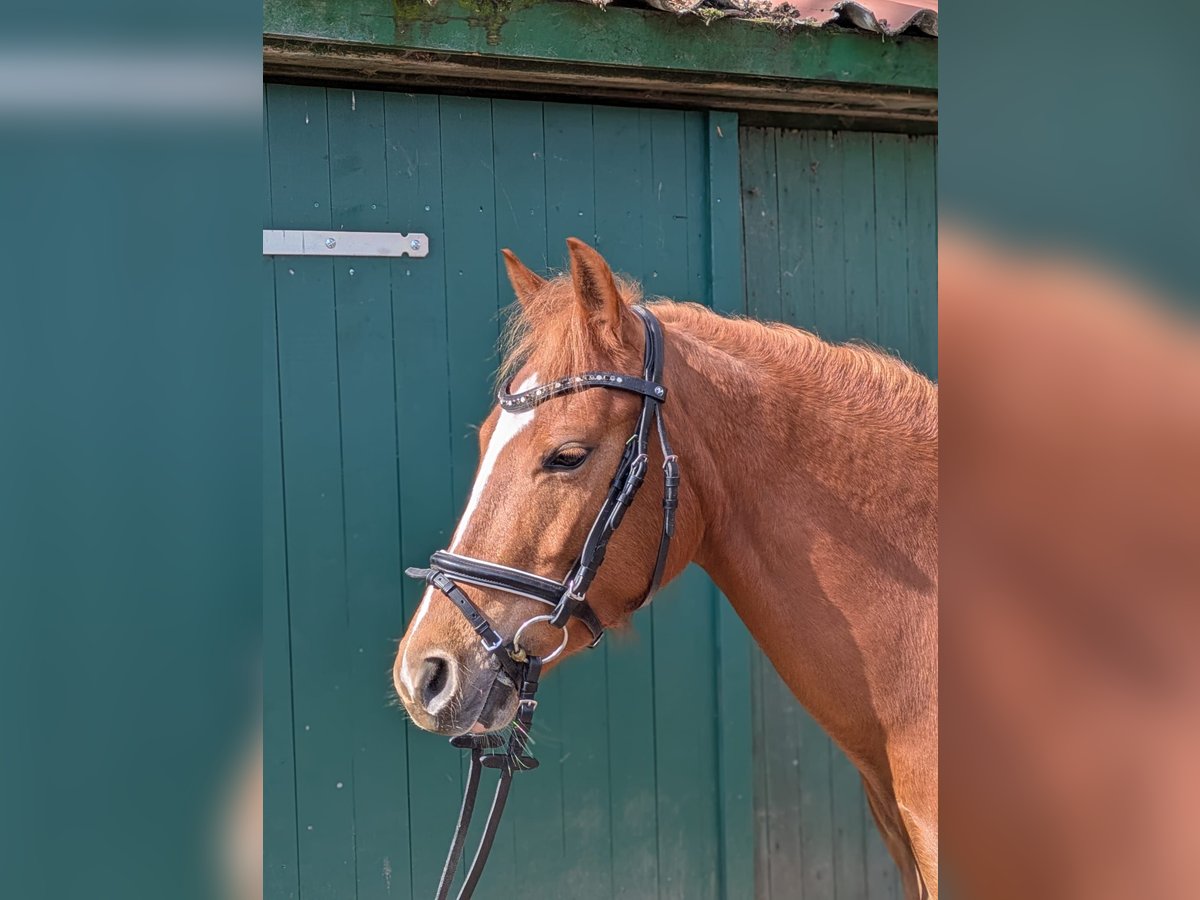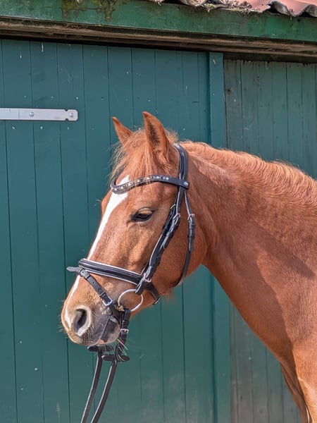 Zum Verkauf steht unsere 4-jährige Reitponymix Stute Draig VS (Kürbis) mit vielseitigem Entwicklungspotenzial für Freizeit und Sport. Draig ist im täglichen Umgang stets freundlich, mitunter etwas keck und aufmerksam. Sie kennt sowohl Laufboxen- als auch Boxenhaltung mit Paddock. In der Herde zeigt sie sich rangniedrig und insgesamt unkompliziert im Sozialverhalten. Als Jährling hat sie sich einen optischen Mangel am Huf hinten rechts (letztes Bild) zugezogen. Dieser beeinträchtigt sie weder im Gangbild noch in der Hufqualität. Bei ernstaftem Interesse können Röntgenbilder vorgelegt werden. Sie ist in allen drei Grundgangarten unter dem Reiter angeritten und präsentiert sich hierbei rittig. Aktuell misst sie ca. 1,43 m, wurde jedoch im vergangenen Jahr offiziell mit 1,40 m als Turnierpony eingemessen, sodass keine erneute Nachmessung für die Eintragung erforderlich ist. Aufgrund ihres Alters und ihres Charakters eignet sie sich akutell vor allem für pferdeerfahrene Personen, die Freude daran haben, ein junges Pony weiter auszubilden. Für Kinder oder Anfänger ist sie noch nicht geeignet, da sie ihre Grenzen durchaus hinterfragt. Desweiteren ist sie regelmäßig gegen Influenza, Tetanus sowie West-Nil -Virus geimpft und entwurmt. Bei ernsthaftem Interesse freuen wir uns über eine Nachricht.