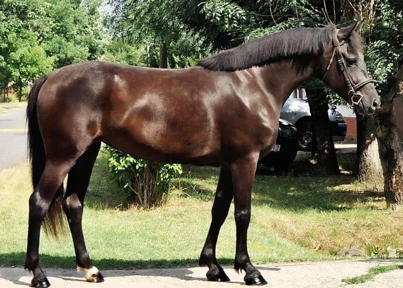 For adoption into a FOREVER HOME The price is WITHOUT transport!! Szellő – 4 years old, 151 cm tall, wonderful black-brown mare! Szellő is much more than just a horse – she is the companion that makes every day a special experience. With her friendly nature and gentle gaze, she immediately wins hearts. She has beautiful movements, a pleasant go, and is easy to ride with a nice go. Despite her young age, she is very smart, learns quickly, and always enjoys working with her rider – but she still needs further training and routine. Whether in the field or in the arena – Szellő remains reliable and confident at all times. Even in new situations, she stays calm, making her an excellent choice for both beginners and more experienced riders. Visually, she is a true beauty: harmonious conformation, noble head, well-groomed mane and tail, and shiny black-brown coat. She is regularly vaccinated and dewormed, and of course, has a horse passport. She behaves well and is uncomplicated during grooming and with the farrier. Szellő is a versatile mare that is suitable as a loyal family horse, a loving leisure partner, or for lighter sports tasks. With her, every day becomes a wonderful experience. If you like this pretty lady – please contact with a phone number for the fastest possible communication. I look forward to your message.