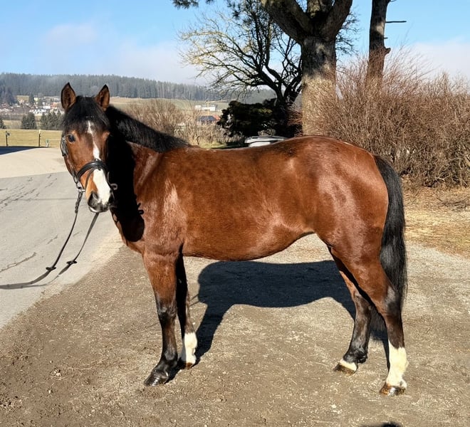 7 years old 14.2 hh Gentle and relaxed Loves long rides Enjoys the company of other horses Additional information and videos available via WhatsApp or by phone at: +43 660 3632373 Location: Pelmberg 15 / Upper Austria Viewing and test rides gladly arranged by appointment! Transport of the horse can be organized upon request.