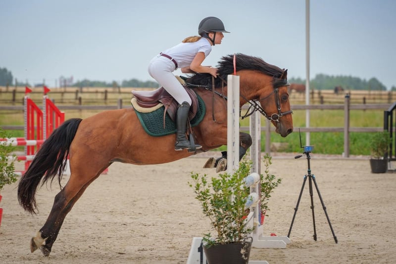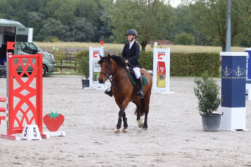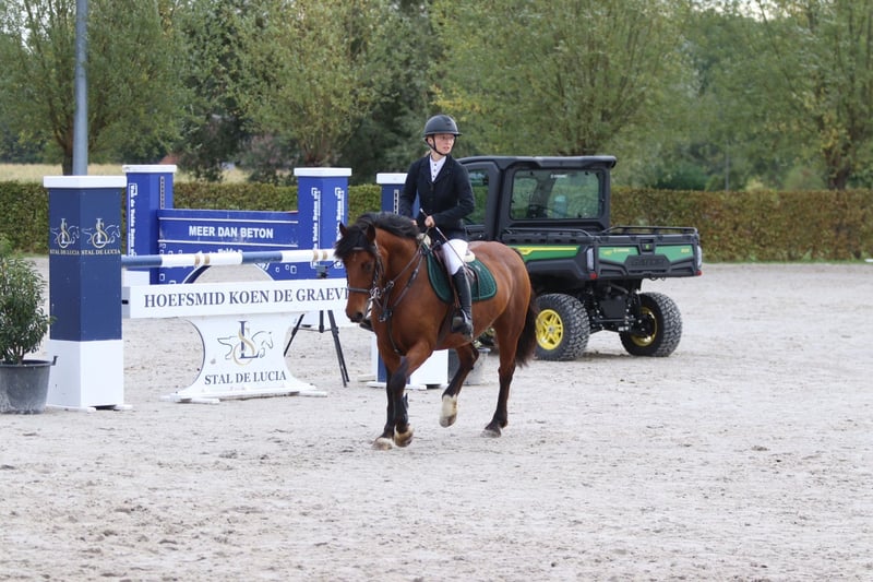 Nice jumping pony – Rush ✨ Rush is an 8-year-old mare standing at 1.44m, solidly built and a real eye-catcher in the ring. She is beautifully forward-going, but always easy to bring back. 🏅 Jumping experience: Rush has already competed in several courses at competition level (85–90 cm) and does this with great enjoyment and power. She has plenty of course experience and is ready to further develop with her new rider. 👩🎓 Rider profile: Not suitable for complete beginners, but perfect for a rider who has a good command of the three basic gaits and wants to enter the sport. 🌳 Well-behaved in handling & on trail rides: Rush is a super well-behaved pony, both alone and in a group on trail rides. She is also very social in handling and gets along well with other horses and ponies. 📞 More info? Call or text +32 475 68 22 43 🎥 For videos, you can visit our website – feel free to send a message!