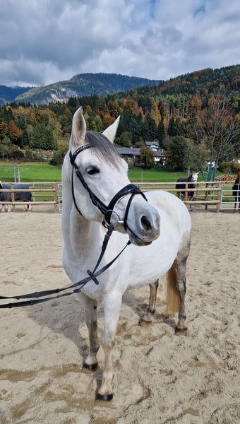 Unsere wunderschöne 8jährige Ponystute Gabi ist ein echtes Herzenspony – zuverlässig, gelassen und mit einem Traumcharakter ausgestattet. Sie ist das perfekte Pony für Kinder, Anfänger oder schwächere Reiter, aber auch aufgrund ihres ruhigen Wesens und ihrer Größe (145 cm Stockmaß) hervorragend für den Therapieeinsatz geeignet. Mit ihrem kompakten, stabilen Körperbau deckt sie auch größere Reiter problemlos ab, sodass sie für Kinder, Jugendliche und auch Erwachsene, die lieber ein Pony reiten möchten, ideal ist. Gabi läuft brav in allen drei Grundgangarten auf dem Platz und zeigt sich dabei stets kooperativ und angenehm zu reiten. Sie ist eher vom gemütlichen Typ, stets freundlich und unerschrocken. Auch an der Longe ist sie sehr brav – selbst mit kleinen Kindern. Im Gelände ist Gabi ein absoluter Schatz: nervenstark, unerschrocken und zuverlässig, egal ob in der Gruppe oder alleine. Mit ihrem Prinzessinnen-Look und ihrem liebevollen Wesen ist sie ein echtes Traumpony für die ganze Familie. 🩷 Gabi ist gesund, hat keine Unarten und ist im Umgang ein absoluter Traum – vom Putzen bis zum Reiten einfach unkompliziert. Ein komplettes Zubehörset kann auf Wunsch gegen Aufpreis mit erworben werden. Ein Besichtigungstermin kann gerne jederzeit nach Absprache stattfinden und ein Transport kann gerne organisiert werden!