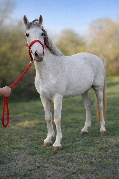 A stunning 8-year-old mare standing at 14.8 hands 🐎. Blanka impresses not only with her elegant white coat but also with her excellent temperament ❤️. 🌟 Features: ✔️ Very well-behaved and balanced 🧘♀️ ✔️ Ideal for children and beginners 👧🧒 ✔️ Rides confidently under the rider 🏇 ✔️ Reliable jumper with the rider 🧡 ✔️ Well-mannered and easy to handle 🤝 This lovely mare is the perfect partner for leisure riding, first competition experiences, or simply for fun in the saddle 🌿. Thanks to her calm nature, Blanka also provides a good feeling for nervous riders 💫. 💎 Special features: 🤍 Beautiful white coat 🐾 Clear-minded and eager to learn 🏡 Also very friendly and suitable for children in handling A true reliable partner, excelling both in the field and in the arena 🌳🏟️.