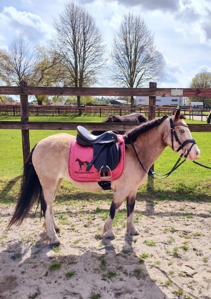 Rosie – the Perfect Child’s Confidence Pony Are you looking for a loyal companion for your child? Rosie is exactly the pony you need! This wonderful confidence pony is not only well-behaved and easy to handle but also a true star at competitions. **Highlights of Rosie:** - **Experience:** She completes all beginner dressage tests flawlessly and has achieved numerous wins in dressage and jumping up to E level. - **Suitability:** Perfect for young riders taking their first jumps and also a real hit in lead-rein classes. - **Health:** Rosie is in excellent health, with no prior illnesses, and is safe around fences. - **Temperament:** She is very easy-going and gets along well with other horses, even larger ones. **Special Offer:** Immediate purchase comes with a 5% discount on the asking price! **Test Ride:** We offer you the opportunity to test Rosie with us for one week, accompanied by experienced trainers. This trial week can be combined with riding lessons. Please note that a trial fee applies, which is not deducted from the purchase price. **Pre-Ride Viewing:** You are welcome to come and see Rosie. The cost for a pre-ride or trial ride is €30 per person. We only place Rosie in the best hands – if everything fits, my daughter would love to continue riding her. Do not hesitate to contact us! **Rosie – a pony that wins hearts!**