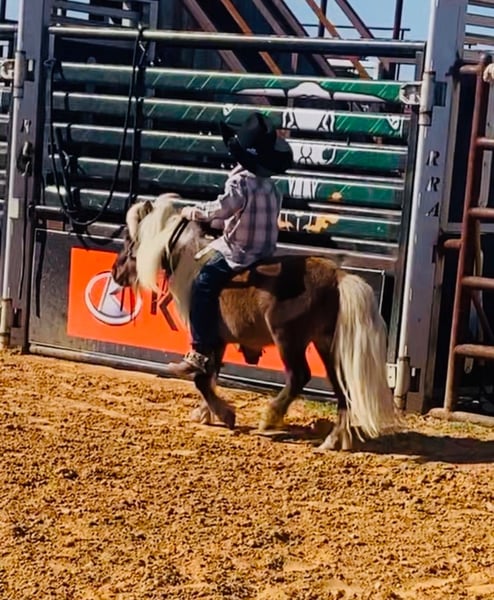 🎁 𝐈𝐍 𝐓𝐈𝐌𝐄 𝐅𝐎𝐑 𝑪𝒉𝒓𝒊𝒔𝒕𝒎𝒂𝒔 🎁 Happening now thru TUESDAY | DECEMBER 9th - Available EXCLUSIVELY on Ponybid's website! For more details and to register visit: www.Ponybid.com CONSIGNOR CONTACT: Brock Nesbitt & JB Mauney 712-830-9043 LOCATION: Stephenville, TX BREED: Pony REGISTERED: No REGISTERED NAME: Jesse James COLOR: Palomino HEIGHT: 34" AGE: 7 GENDER: Stallion Jesse James is a 7 yr old pony who resides at JB & Samantha Mauney’s - Bucktown. He is the kind of pony buyers dream about. He’s grown up in the middle of real-world chaos—bucking bulls, busy ranch days, loud equipment, dogs, and kids. Jagger and the Nesbitt kids have hauled, handled, and put a million miles on him. They are able to ride him up into the trailer, bath him, push calves with him, and put him through everything from cap guns and flags to tight pens and moving cattle—and he handles it all like a seasoned little ranch horse. Jesse James is the complete package: honest, reliable, and yet still enough pony personality to keep things fun. With the miles, exposure, and training that only Bucktown and a large ranch can provide.