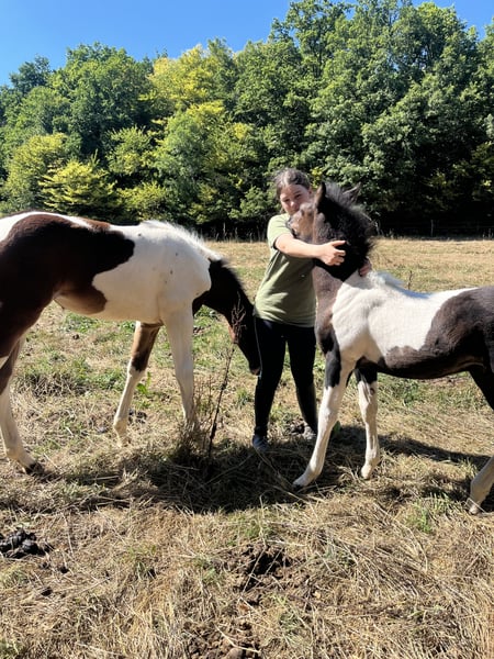 Purple Tom Tovaline Poulain de 4 mois, licolé, marche en mains, donne les 4 pieds. A déjà vu le maréchal. Poulain adorable attachant et très câlin. Tommy est intelligent, analyse et comprends tout très vite. Calme, observateur avec un petit côté espiègle qui saura vous séduire, Tommy fera un excellent cheval de famille . Sera polyvalent et sûrement partant pour toutes disciplines Sera vendu pucé, primo vacciné, vu par maréchal et ostéopathe Paiement échelonné jusqu’à sont sevrage (janvier février)