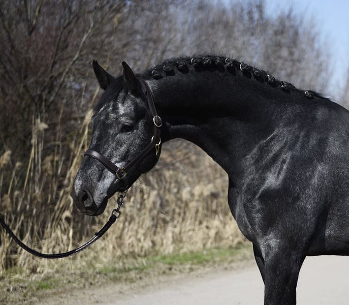 Hermoso semental Holstein de cuatro años. Padre: Crack, Cornet Obolensky; por parte de madre, Galrado. Muy fácil de montar y con un talento excepcional para el salto. También ideal para un jinete joven.
