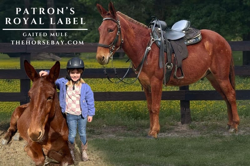 OPEN BIDDING ON THEHORSEBAY,COM. SALE ENDS ON 05/22. More information is available on the website, including an UTD vet inspection, Coggins, video, images, and the owner's contact information to ask questions, request information, or make arrangements to come to visit. If you’ve been searching for a true Gaited Mule, you’ve found him! This is a once-in-a-lifetime Mule. Patron has the smoothest and most natural gait of any gaited equine I’ve ever ridden. (I’ve owned 7 breeds of Gaited Horses). There is no need for special shoes or a bit to get the gait-see the videos with “no hands”. Patron is a 15-hand deep Chestnut colored Registered John Mule bred and trained by Keith and Tammy Holley from Holley’s Walking Ears in Tennessee. He is out of their Gaited Jack and TWH mare. I’ve even included some of his baby pics. Keith is the President of the American Gaited Mule Association. They kept Patron for their own personal mule for the first 10 years of his life. They showed him and rode him in some rough terrain in Tennessee. After quite a bit of begging and $$, they finally agreed to sell him to me. So, I am only the second owner. Since we have had him, he’s been ridden by myself (about to age out of riding), my 21-year-old daughter, and our 13-year-old neighbor. You will even see some of our lesson kids on him and cleaning his hooves. We’ve ridden him from Hocking Hills, Ohio, SW Virginia (Jefferson National Forest), and NC to the Sandhills in SC. He is definitely a very experienced trail mule, as you can see from the videos. He tolerates just about anything we’ve thrown at him-jumping and standing on him, riding English, Western or Bareback, riding double, riding backwards, even riding him up from the pasture with absolutely nothing-no bridle, halter or saddle, laying on him in the pasture while he’s laying down, negotiating mud, creeks, steep banks, dragging brush, barrels, even wrapping him in Christmas paper. He will ride in the back, middle, or lead when trail riding. He will go out on his own. He has a nice canter. (Read More on Thehorsebay)