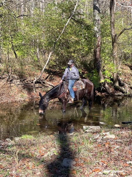ONLINE AUCTION Place your bids at www.PlatinumEquineAuction.com Starting Bid $3500 Auction ends February 9th, 2025 Need a new saddle? Check out White Rock Saddles on our website or Facebook! Earnie is a one of a kind gaited mule. He is undoubtedly the brokest, handiest, smoothest mule I have ever had in my barn. This mule is absolutely incredible, just watch the video and let him speak for himself. In the video you’ll see Earnie riding at a walk on a very loose relaxed rein, you’ll see him gait and lope, this mule’s gait is awesome, and his canter will make your mouth water, is collected, correct and uncomplicated to ride. He is traffic safe, used to trail dogs and will ride in groups of any size or out alone with ease. This mule is easy to handle, no problem for the farrier and just flat out easy to be around. He will neck rein, ride bridleless and back up. Staying true to a mule’s reputation, he is sure footed and very confident on the trail. Earnie is 15 years old, stands 14.3 hands and easy to brag on! Located in Moscow, OH. Contact Brandenburg Stables Zach 513-508-3684 with any questions. ONLINE AUCTION Place your bids at www.PlatinumEquineAuction.com Starting Bid $3500 Auction ends February 9th, 2025 Need a new saddle? Check out White Rock Saddles on our website or Facebook!