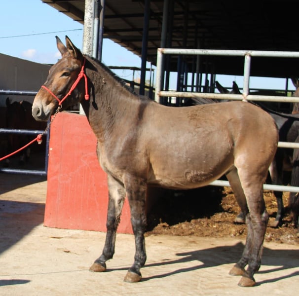 All of our noble mules have been ridden and are safe for traffic. They are not skittish and are regularly taken to Romerías and Ferias (Spanish festivals), so they are accustomed to a certain level of noise and commotion. The handsome gelding is gentle with the rider, well-behaved in handling, and suitable for relaxed rides. Upon request, he can be entrusted to us for further training. International transportation can be arranged.