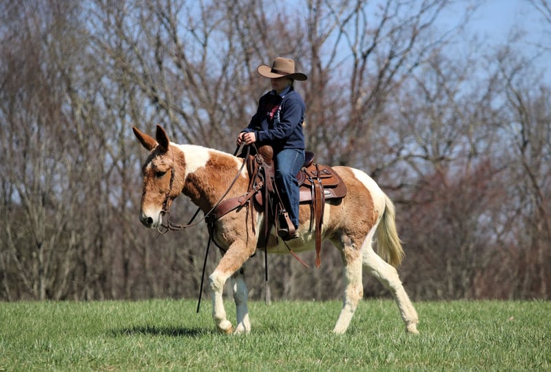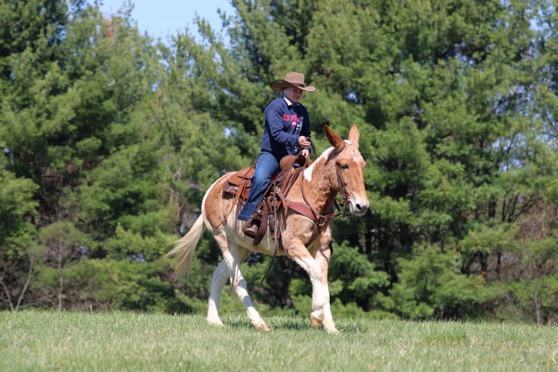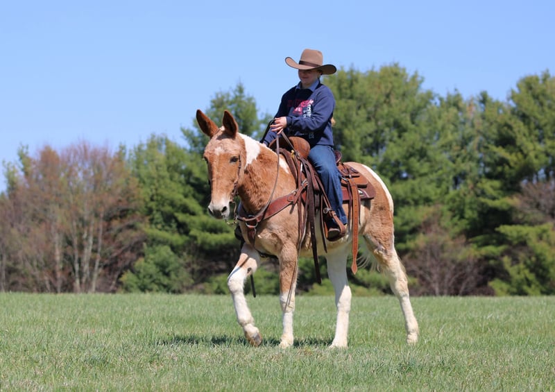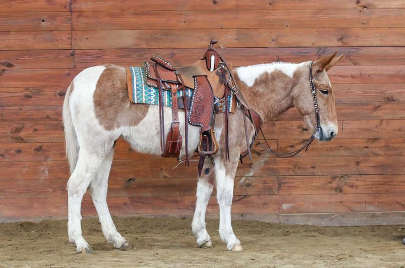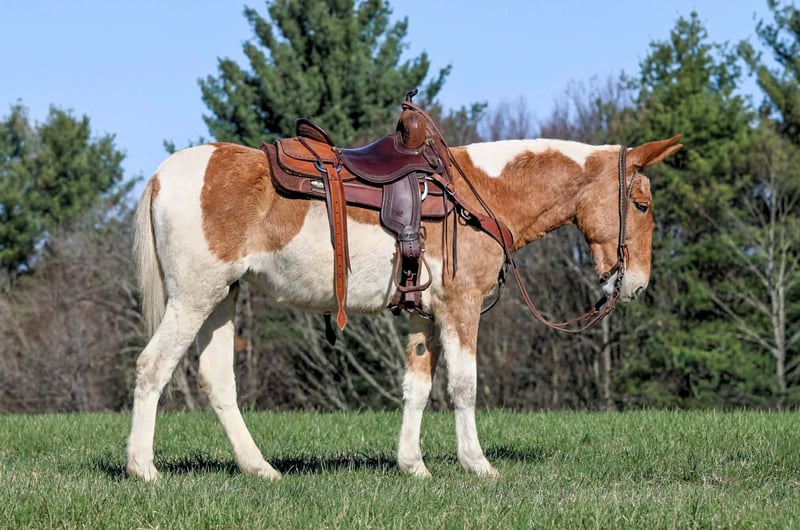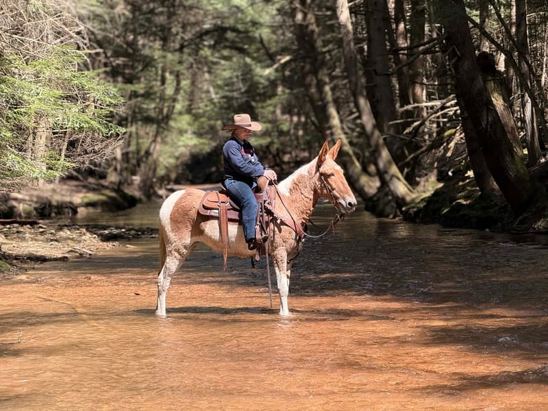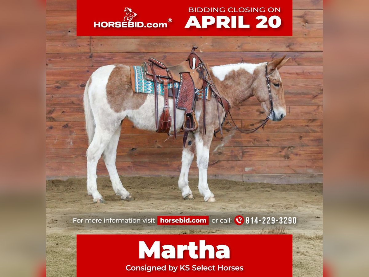 ⚜️𝐭𝐡𝐞 𝓔𝓵𝓲𝓽𝓮 𝐒𝐩𝐫𝐢𝐧𝐠 𝐂𝐥𝐚𝐬𝐬𝐢𝐜⚜️ Happening now thru MONDAY | APRIL 20th - Available EXCLUSIVELY on HorseBid's website! For more details and to register visit: www.Horsebid.com CONSIGNOR CONTACT: KS Select Horses 814-229-3290 LOCATION: Clarion, PA BREED: Mule REGISTERED: Yes REGISTERED NAME: Walking On Hard Times COLOR: Red and White Paint HEIGHT: 14.3 AGE: 12 GENDER: Molly Mule Walking on Hard Times is a Registered Mule. Her barn name is Martha. Martha is a coming 12 year old registered Molly Mule. You want a really broke but also super quiet and gentle mule any one can ride? Then Martha is exactly that. I am usually not a mule fan but Martha i love. Actually Martha everyone at the barn loves. She is a excellent trail mule. Goes anywhere you ask her to go on the trail . Very seasoned and sure footed. Rides the same every time you saddle her . Very reliable and dependable. She is very easy to catch and easy to handle her feet. Very friendly and loves attention. She is very smooth and will have a nice slow smooth gait and a smooth lope to her. She can carry the flag and the big teddy bear nothing bothers her or phases her. Very Solid! You can be a beginner and get along with her as i consider her beginner friendly. She has good steering with a very nice one hand neck rein. Good for the farrier and vet and easy to bath. Just a super nice solid all around mule. She passed a vet health exam on April 6th. We can help arrange delivery anywhere in the United States. Call or Text Kris at 814-229-3290. Thank You and God Bless