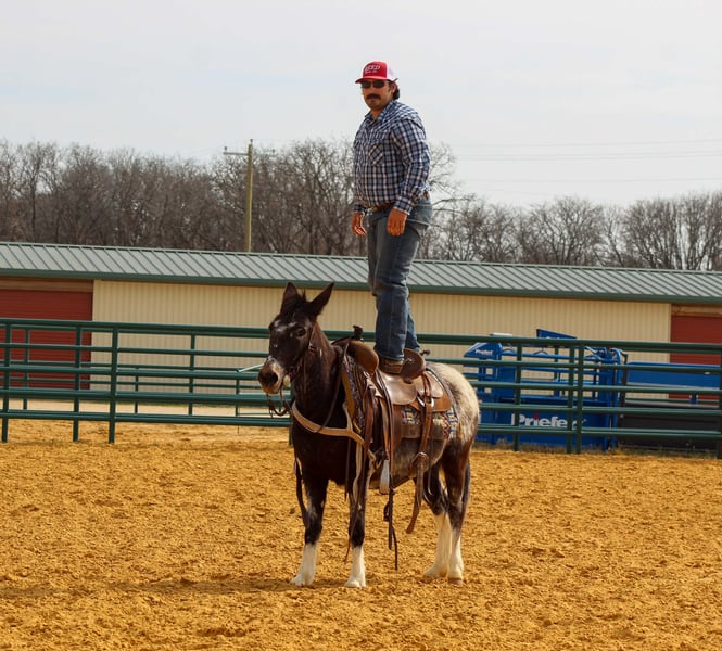 "AVAILABLE ON ONLINE HORSE AUCTION AT www DOT PlatinumEquineAuction DOT com BIDDING OPEN NOW thru SUNDAY | APRIL 12TH! *Final price will be determined on auction site* CONSIGNOR CONTACT INFO: Travis Erickson 563-380-9011 LOCATION: Waukon, IA Cali is a 6-year-old Appaloosa molly mule standing 12.1 hands tall and she is the total package wrapped in chrome. This little mule has been ranch seasoned and works weekly at the sale barn penning back cattle and loading trucks — she knows a full day’s work and shows up ready every single time. Gritty, honest, and all heart, she’ll stay with you from sunup to sundown without ever looking to quit. Out on the trails, Cali is bold and sure-footed. Steep hills, rough country, water crossings, bridges, and deadfall logs are just another day at the office. She rides soft and correct in the arena, walks, trots, and lopes nice circles, has a good stop, and backs up with ease. She’s been hauled to town, is traffic safe, and has even marched right down Exchange Avenue at the iconic Fort Worth Stockyards through heavy crowds, loud music, and nonstop commotion like a seasoned pro. She’s flag broke, will drag logs, track cattle, and has been started on the lead steer. Cali has even pulled a buggy and handled it with confidence. Easy to catch, stands tied, loads and unloads quietly, and you can saddle her up and step right on. If you’re looking for a tough, classy, do-it-all mule with eye appeal and real-world experience — Cali is it. We are open to anyone interested in her to schedule a time to come see her or if you can’t make it schedule a FaceTime showing to see her. If you need help with transport don’t hesitate to ask we have a list of reputable haulers that can get her safely to your doorstep WORLD WIDE including, Alaska , Mexico, Hawaii, Canada and anywhere in between. Located in Waukon, IA Contact Travis at 563-380-9011