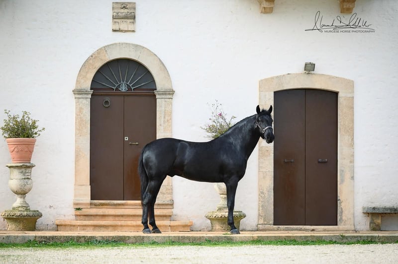 De prijs is inclusief castratie. ~ Sartù TA ~ Deze prachtige, jonge Murgese valt op door zijn sterke karakter en eerlijke aard. Hij is aandachtig, intelligent en heeft daarbij een eigen wil – een paard dat graag meedenkt en zijn mensen soms in twijfel trekt. Ondanks zijn karaktersterkte en nieuwsgierigheid toont hij zich lief, aanhankelijk en zeer mensgericht. In de omgang altijd vriendelijk en respectvol, zoekt hij zijn vaste persoon. Hij kent al het zadel en bevindt zich momenteel in een leeftijdsadequate, zorgvuldige basisopleiding, die hij gemotiveerd en leergierig doorloopt. Een geweldige partner voor iedereen die een charismatisch paard met persoonlijkheid zoekt! Momenteel heeft hij een schofthoogte van 164 cm. Wil je Sartù persoonlijk ontmoeten? Hij staat momenteel nog in zijn thuisland Apulië. Röntgenfoto's brengt hij ook mee, bij serieuze interesse zijn deze in te zien. Ook plannen we alles verder voor jou - klinisch aankooponderzoek, afhandeling van het koopcontract, transport naar jouw stal, enzovoort. - in opdracht van de Italiaanse Murgesenvereniging A.N.A.M.F.