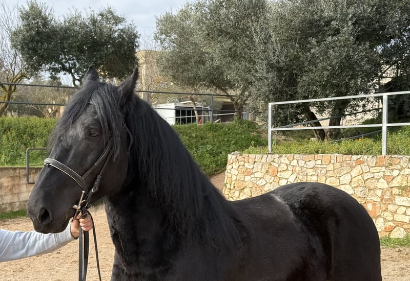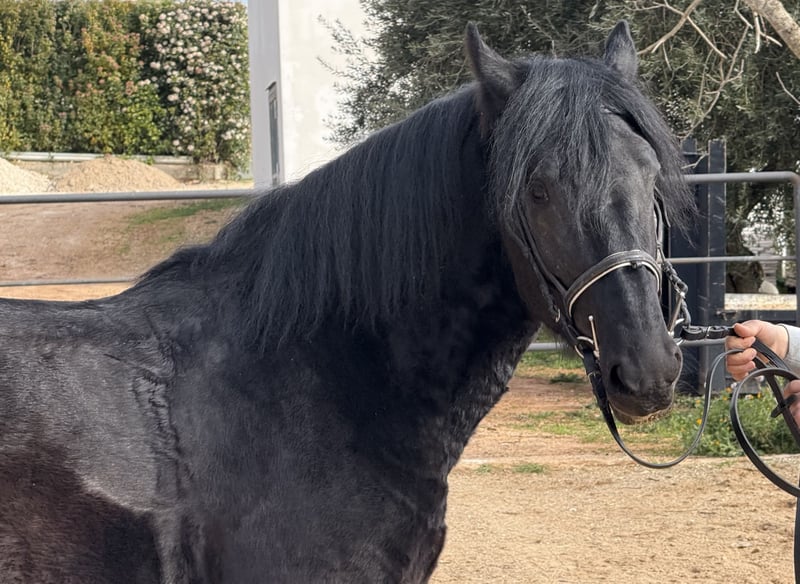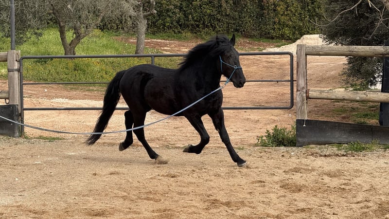 Indeed a rarity that we are allowed to present here. Riobo is a four-year-old Murgese who was slowly started under saddle at the beginning of the year and has since made good progress in his riding education. He was born and raised in this breeding program, from where we are now able to facilitate his sale. His training also took place and is still ongoing here. He has experienced quite a bit – life outdoors in a herd, as well as the bustling activity on a farm with dogs, machinery, and people. Riobo is well-behaved under saddle, works diligently, and learns quickly. He is a wonderful young fellow, well-mannered on the ground, yet with a bit of spirit that keeps him from being dull. Riobo is therefore suitable as an all-rounder for a family that wants to build upon the established foundation and is eager to further promote and train a young horse. He belongs to the light to medium type, with strong legs and a short back. Do you want to meet Riobo in person? He is currently still in his home in Apulia – we are happy to plan a visit there with you. He also comes with X-rays, which are available for serious inquiries. We will also take care of everything else for you – clinical vet check, handling of the purchase contract, transport to your home stable, etc. We look forward to your message! More pictures and a video of him in motion are available upon request. - On behalf of the Italian Murgese Association A.N.A.M.F.