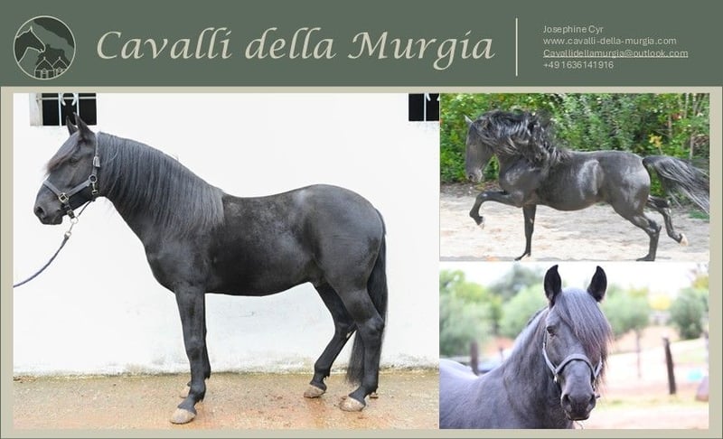 Sugar Sugar is a 2022-born Murgesen stallion currently residing in Martina Franca, Italy. He comes directly from the Vallenza breeding farm, where he enjoyed a fair and species-appropriate upbringing with plenty of turnout – a factor we highly value in the care of our Murgesen horses. Since June, Sugar has been in training with us and has already learned some important basics: he is familiar with a halter, hoof care, electric fencing, saddle, and bridle. He is currently getting used to rider weight and displays an interesting mix of calmness and youthful restlessness. Sugar is a spirited and movement-loving stallion with great potential. His energy and agility make him a promising candidate for high-level leisure riding or as a dynamic partner in Working Equitation. Although he is not yet saddle-trained, his training is about to begin. With each step forward, his price will increase – currently, it is €12,500. Those who act now have the opportunity to acquire a characterful and expressive partner before he progresses to the next training phase. If you have specific expectations regarding his training level, we are happy to continue his training and accompany Sugar until he reaches your desired level. We also assist with organization: helping you plan a visit to Apulia, handling the purchase process, organizing transport to Germany, and arranging a comprehensive pre-purchase veterinary exam. Sugar can still be gelded in Italy, and we can also organize his castration for you. X-ray images are available and can be viewed upon request. We are happy to send additional photos and videos as well. Has Sugar piqued your interest? We look forward to your message and are happy to offer personal advice. cavallidellamurgia@outlook.com http://www.cavalli-della-murgia.com Instagram: cavallidellamurgia