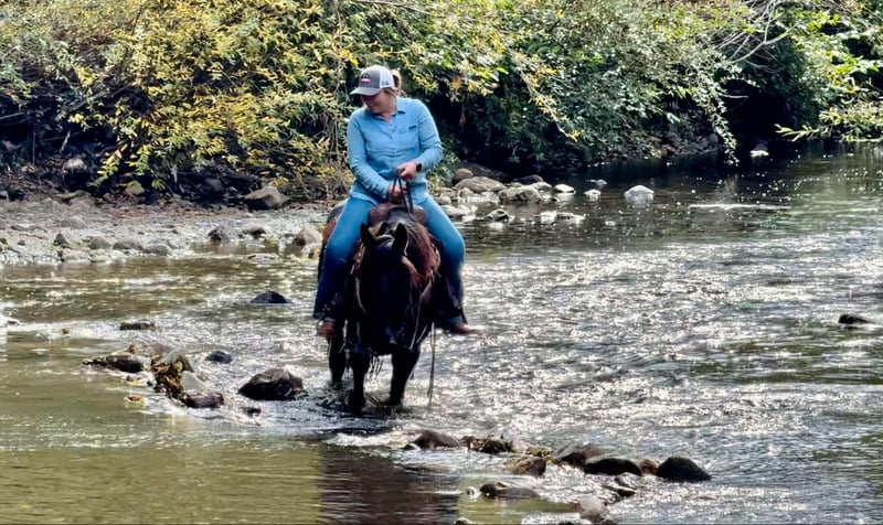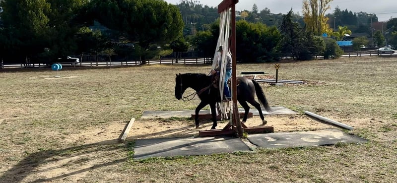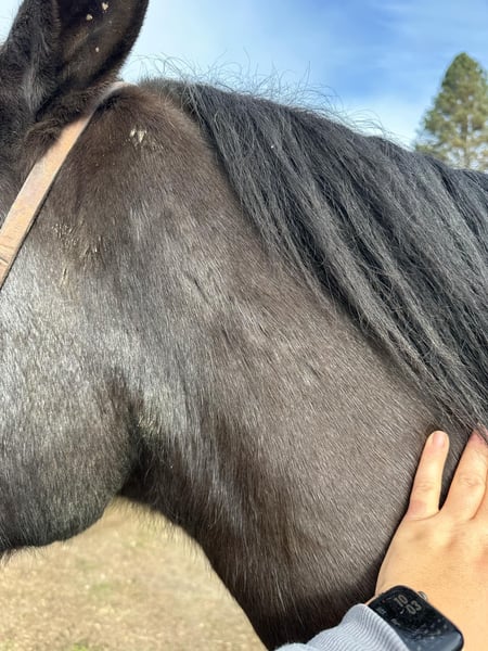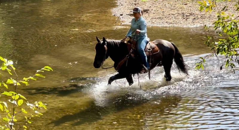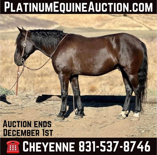 ONLINE AUCTION Place your bids at www.PlatinumEquineAuction.com Starting Bid $3500 Auction ends December 1st, 2024 Need a new saddle? Check out White Rock Saddles on our website or Facebook! Cuervo is a 10yr old titled BLM mustang off the Stone Cabin, NV HMA. He stands 14.2HH and has thick bone and a strong build. When I tell you, you won’t find a better trail stead I mean it! Cuervo is an absolute blast to ride long rides with your friends, or adventure alone. Being raised out in the steep terrain he is the epitome of sure footed and SAFE! He will travel through literally anything and never take a wrong step. He navigates through steep drops, rushing rivers, tree limbs, and rocks like a dream. Cuervo loves to go explore and always is the best mannered guy. He can lead the pack, stay in the middle, follow up the hind, or venture off alone and he will be content in any situation. Nothing phases him, he stays sane and quiet in all scenarios. We have carried flags, gone over tarps, and he is a natural pro at the trail course obstacles. Cuervo never refuses, or bocks at anything. He is the most willing, calm minded horse I have ever been around. We have also exposed him to roping and cattle and he has taken a liking to it and shows promise! He respects leg pressure, has the lightest touch neck rein handle, knows his leads and has pretty circles in the arena. He has an easy stop and reverses with light pressure. This guy can be left off and never change his sweet calm demeanor. He has no spook, no buck and no bolt making him a choice for any level rider. Cuervo always stands patiently tied for tacking, grooming and bathing. He will let you clip every hair on his body, face and ears no problem. Cuervo stands amazing for the farrier and has GREAT solid black feet that are easily maintained. He can load up in the trailer all by himself and back out easily. He’s been pastured with multiple horses or stalled alone. He doesn’t get buddy OR barn sourness. Cuervo is the definition of fun, safe and sane! If you’re a person wanting to be competitive in trail versatility competitions this is the guy for you! He would also accommodate anyone just wanting to maximize their joy of riding! We know you’ll love Cuervo just as much as we do! For any more information, please contact Cheyenne Rey 831-537-8746. He is located in Bitterwater, CA. ONLINE AUCTION Place your bids at www.PlatinumEquineAuction.com Starting Bid $3500 Auction ends December 1st, 2024 Need a new saddle? Check out White Rock Saddles on our website or Facebook!