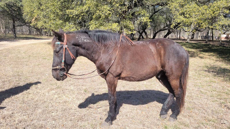 For Sale: American Mustang Gelding Discover the spirit of the wild with this stunning black Mustang gelding, born in 2011. Standing at 14 hands, he embodies strength and agility, making him an excellent choice for leisure riding. His natural temperament and versatility make him a great companion for riders with intermediate to advanced experiences. Whether you're looking for a reliable partner for trail rides or a fun, engaging horse to enjoy in your free time, this Mustang is ready to join you on your next ride! Don’t miss the opportunity to own a piece of American heritage—contact us today to learn more!
