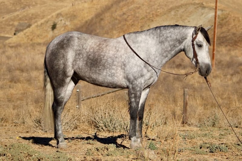 ONLINE AUCTION Place your bids at www.PlatinumEquineAuction.com Starting Bid $3500 Auction ends November 10th, 2024 Need a new saddle? Check out White Rock Saddles on our website or Facebook! Jorje is an amazing dapple gray mustang gelding is the epitome of gentle, standing at a proud 16 hands and exuding kindness with every movement. Jorje gracefully conquers the steepest hills and navigates rocky terrain with ease, embodying both strength and elegance. Renowned for his extreme gentleness, he is safe for absolutely anyone to ride, making him a prized companion in any equestrian setting. Not only has he gathered and branded countless cattle with unwavering dedication, but this exceptional horse also showcases his talents as a proven seasoned head horse. Solid in the box, he pulls like a dream and faces on a dime; whether you’re running ten or twenty head in succession, he rates cattle impeccably while delivering consistent shots each time. Jorje accolades include winning jackpots, buckles, and substantial prize money—a testament to his competitive spirit evident during events such as the Californian ACTRA roping finals where he performed rock solidly as always. Ridden by participants ranging from novice to advanced riders alike, he remains adaptable and competitive across all skill levels. Jorje has also been started English, he shows remarkable potential to be shown in the hunter jumper, or dressage. Beyond his athletic prowess—he clips easily, ties without fussiness, is cooperative for the farrier—all while possessing an amiable personality that makes him simply delightful to be around. This gelding exhibits absolute comfort around tarps, balls, or traffic; truly superior traits make him an unparalleled trail partner, Jorje is a true “one in a million” among horses today because they don’t make them like this often anymore! Don’t miss out on a great opportunity to own part of American history. Located in King City, CA. Beau Mendala 831-732-9074. ONLINE AUCTION Place your bids at www.PlatinumEquineAuction.com Starting Bid $3500 Auction ends November 10th, 2024 Need a new saddle? Check out White Rock Saddles on our website or Facebook!