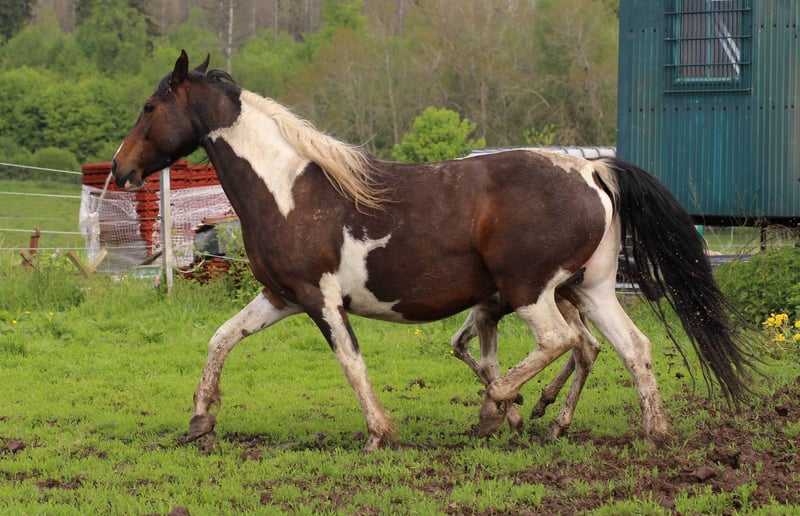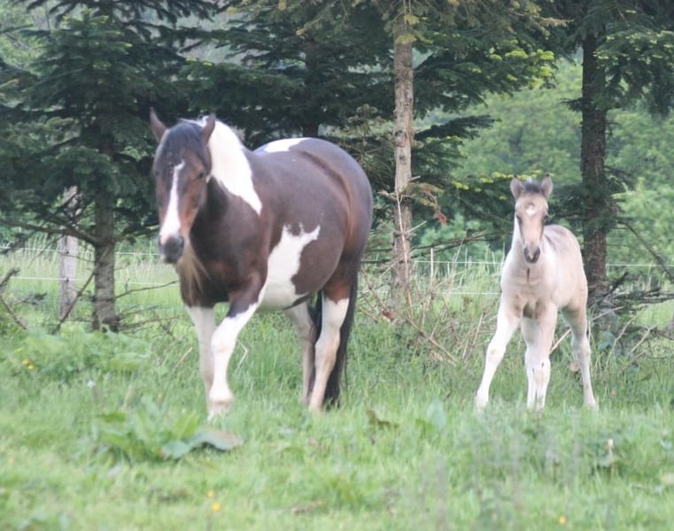 En raison d'acheteurs peu fiables. Disponible à nouveau. Mounty est née en 2013 dans les vastes étendues du Canada. Nous l'avons importée en 2014. C'est une mère exceptionnelle, qui fait tout toute seule. Tous les chevaux l'adorent, elle est facile à vivre dans le troupeau. Elle est toujours prête à jouer avec les poulains et les jeunes chevaux. Actuellement, elle est pleine de l'étalon Mustang doré ARI. Ces dernières années, ils ont donné naissance à des poulains de couleurs variées : Buckskin, Buckskin-Tobiano, Bai-Tobiano, Palomino, etc. Ses poulains mesurent tous plus de 150 cm. Elle n'a jamais été montée jusqu'à aujourd'hui. Non usée et facile à vivre. Pleine pour fin mai, mi-fin mai. Elle pourrait encore déménager. Plus de photos et vidéos disponibles sur WhatsApp au 0179 5221143. Nous avons également d'autres juments à vendre, ainsi qu'Ari, notre étalon doré. Vous pouvez constituer votre propre petit troupeau de Mustangs, car ils se connaissent tous entre eux.