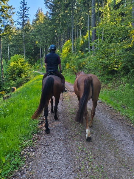 A 14-year-old New Forest Pony seeking a loving home as a trail or recreational riding pony. Stanley loves the outdoors and is a brave, well-behaved, and motivated pony when riding in the terrain. Due to a cervical spine issue, traditional dressage or jumping are not possible. However, Stanley enjoys groundwork, classical lunging, long-reining, and double-longeing. He stands at 147 cm (approximately 14.1 hh) and has a good temperament, making him suitable for experienced adult riders who can sit independently without relying solely on the reins. He is not a beginner or children's pony and requires a rider with riding experience. Currently, he is kept in a gelding paddock with other horses, where he tends to be middle-ranking; he has always shown good compatibility with his herd. Stanley is also completely uncomplicated when it comes to the farrier and loading. Further information gladly provided in person. Video available upon request. Equipment can be included. Priority for the right home over price.