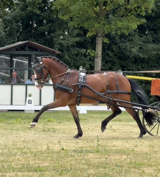 Sehr hübsches und erfolgreiches Fahrpony zu verkaufen. Ein- und zweispännig gefahren. In 2025 Siege und Platzierungen Kl. M Bis 2023 CAI3* gelaufen. Ebenfalls gut geritten, Niveau Kl. L-M Weitere Fotos und Videos gerne auf Anfrage.
