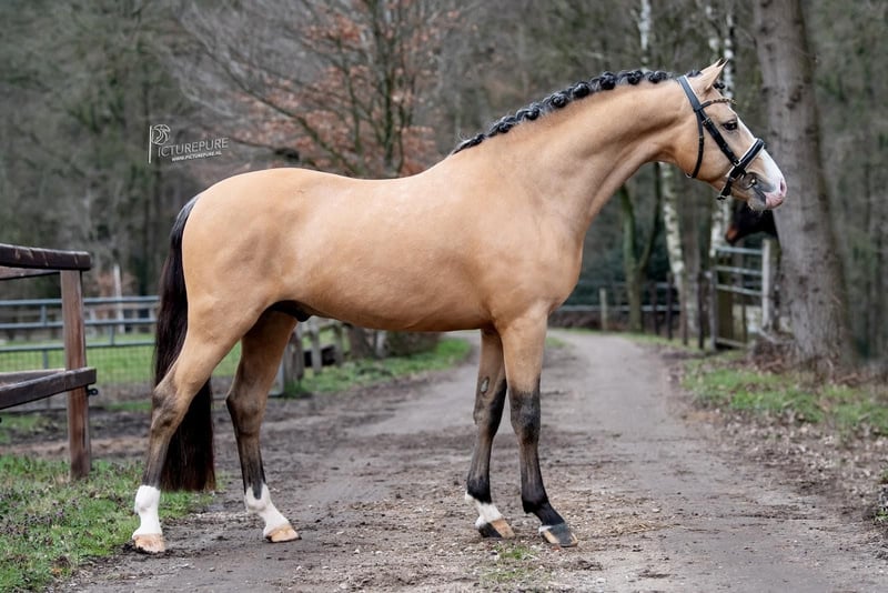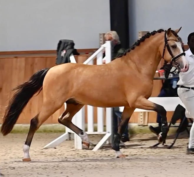 Enchanting New Forest Gelding – perfect for ambitious riders! This charming buckskin gelding was born in 2020 and impresses with his friendly nature and versatile abilities. Standing at 146 cm, he is ideal for riders seeking a reliable and eager-to-learn partner. His special features: - Breed: New Forest Pony - Gender: Gelding - Year of Birth: 2020 - Color: Buckskin - Height: 14.6 hh - Disciplines: Show jumping, Dressage, Leisure riding The pony is healthy, fit, and displays a wide range of talent. He is attentive, eager to learn, and well-schooled – suitable for both recreational riding and competition. If you are interested or require further information, please feel free to contact me. Arrange a viewing and see this wonderful horse for yourself!