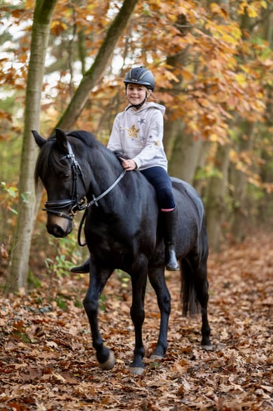 For sale is this beautiful 7-year-old, 14.2 hh New Forest Pony gelding by Holthausen Frodo II x Sulaatik’s Fireball. King is an absolutely well-behaved and reliable children's pony that captures everyone's heart. He is a perfect partner for both dressage and small jumps. He has already competed in his first WBO shows with a 10-year-old girl and handles it effortlessly. He is also a real eye-catcher at small events such as Nikolaus celebrations or costume performances and is happy to join in any fun. In the field, whether in a group or alone, King also performs well. In handling, he is very sweet and well-mannered, and he is, of course, shoe- and trailer-safe. Priority over price.