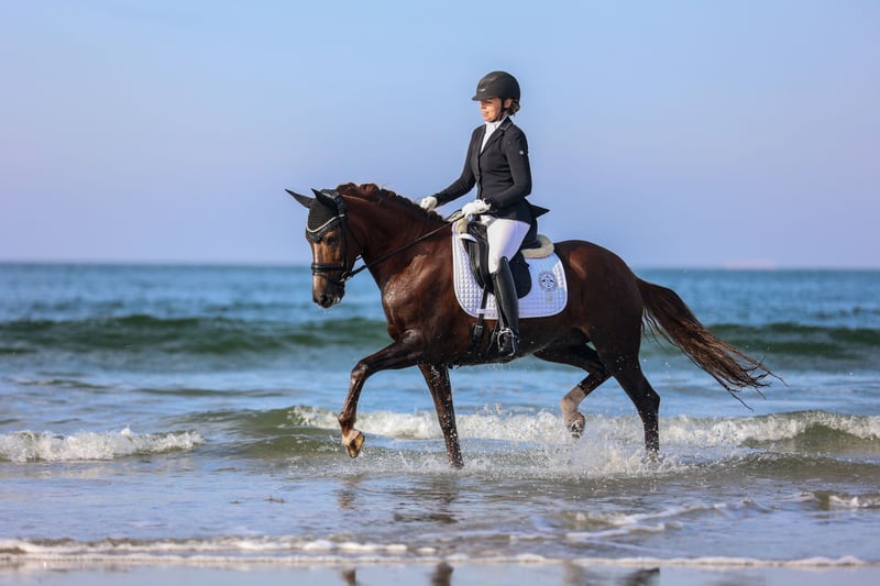 For sale is a beautiful 10-year-old dark chestnut mare (New Forest Pony). She has a height of 152 cm and comfortably accommodates taller riders. She is well-behaved in handling, loading, and farrier visits, with no vices. In the terrain, she is fearless, whether alone or in a group. She has been to the North Sea coast multiple times and simply enjoys it. Her cool and always reliable nature makes her a special family horse. She always gives a sense of security, making her suitable for children or less experienced riders. Under saddle, she shows no bad habits, whether in the indoor arena or on the riding school grounds. She has also been ridden by children in a riding school competition with side reins. She is trained up to A-Dressage (placed in A**-level dressage). She is healthy, regularly vaccinated and dewormed, and is only available to the best of hands. Videos and photos will be sent upon serious interest.
