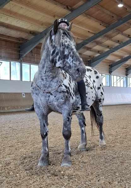 For sale is a truly exceptional horse - a noble, expressive Noriker tiger-spotted with perfect conformation and a character that is second to none. He has been trained in various disciplines. In dressage, he performs travers, renvers, and half-passes... He is ridden by me and a young rider who has completed the riding badge level 5 with him. Whether it's trail rides, festive parades, riding competitions, trail seminars, skijoring, or sledding... he is up for anything. He masters circus tricks, liberty work, and groundwork. He provides a comfortable seat, is light in the hand, and offers a dreamlike riding experience. Aragon is robust and has never been sick. Deworming and other treatments have been carried out as a matter of course. He can be integrated into a herd immediately. No vices. Perfect for re-riders or for the whole family, a teaching horse. He will only be given to private hands. The reason for selling is purely a lack of time - no urgency, but a desire for a good home. Riding equipment can be included. If you are interested or have further questions, I am happy to help. Meet and trial ride by appointment.