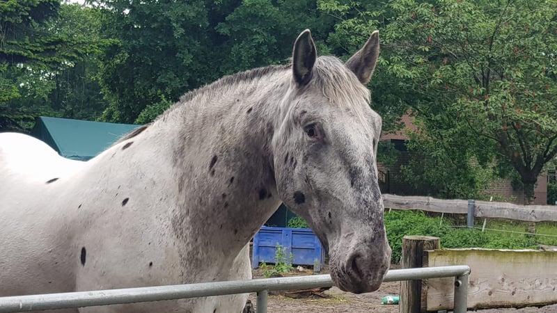 Prachtige tijgerbont. Goed in de omgang, ondanks zijn formaat. Longeerbaar met zadel en bit, gereden in stap. Door een strenge winter en gebroken arm heeft hij wat rust gehad, maar hij is nog wat overbouwd, dus de pauze was niet slecht. Bekend met hoefsmid en loading. Hij is nog nooit ziek geweest, maar heeft lichte zomereczeem, wat met een deken geen probleem is. Hij stond in de paddock en kent ook een box, maar hij geeft de voorkeur aan de paddock. Hij is vertrouwd met hengsten, ruin en merrie; hij springt niet op. Heeft papieren en een paspoort. Transport kan in overleg geregeld worden.