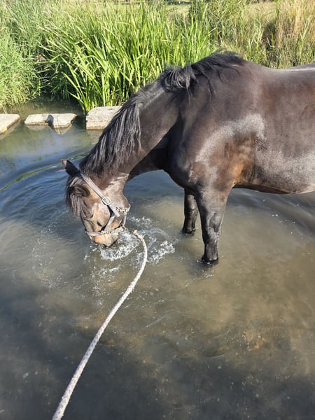 👋🏻 Hallöchen Leute, ich bin's Jumper (Jumpi) – der große, kuschelige auf vier Hufen! Ich bin etwa 1,64 m groß, 9-jahre alt und ein Noriker-Wallach mit Papieren 😎. Und jetzt mal ehrlich: Ich suche ein neues Zuhause. Eins mit Herz, Hirn und Heu – in genau dieser Reihenfolge! ❤️ Ich bin geritten, Gelände? Kann ich! Auch alleine – wenn ich dir vertraue. Und nein, ich bin kein Fahrstuhlpony für unsichere Anfänger. Ich brauche einen erfahrenen Reiter mit Rückgrat, der weiß, wo es langgeht und mir Sicherheit gibt, wenn ich mal wieder denke, dass der Busch da vorne ein Pferdefresser ist. Am besten lernen wir uns aber erstmal vom Boden aus kennen, damit ich dein Können abschätzen kann. 🧐 Im Umgang bin ich sensibel und feinfühlig – also so ein bisschen das Einhorn unter den Norikern. Am Boden wie im Sattel schätze ich klare, faire Kommunikation. Wenn du nett mit mir redest und mich lobst, blühe ich richtig auf! Ich höre sogar auf meinen Namen (ja wirklich!) und komme aus der letzten Ecke der Koppel angelaufen, wenn du mich rufst. 🗣 Ich habe richtig Lust zu arbeiten, aber ich brauche jemanden, der mich fördert und fordert (nicht überfordert, bitte!). Ich hab noch ordentlich Potenzial – da steckt mehr in mir als nur Mähnenwedeln und Möhren mampfen.🥕 Im Herzen bin ich ein verspielter, süßer Quatschkopf, der es liebt, geputzt, geknuddelt und täglich beschäftigt zu werden. Langeweile? Nicht mit mir! Standort: Nähe 67098. Wenn du denkst, du bist mein passender Zweibeiner, dann schick doch mal 'ne PN rüber. Ich freu mich auf dich (und auf Möhren – aber hauptsächlich auf dich).✌🏻
