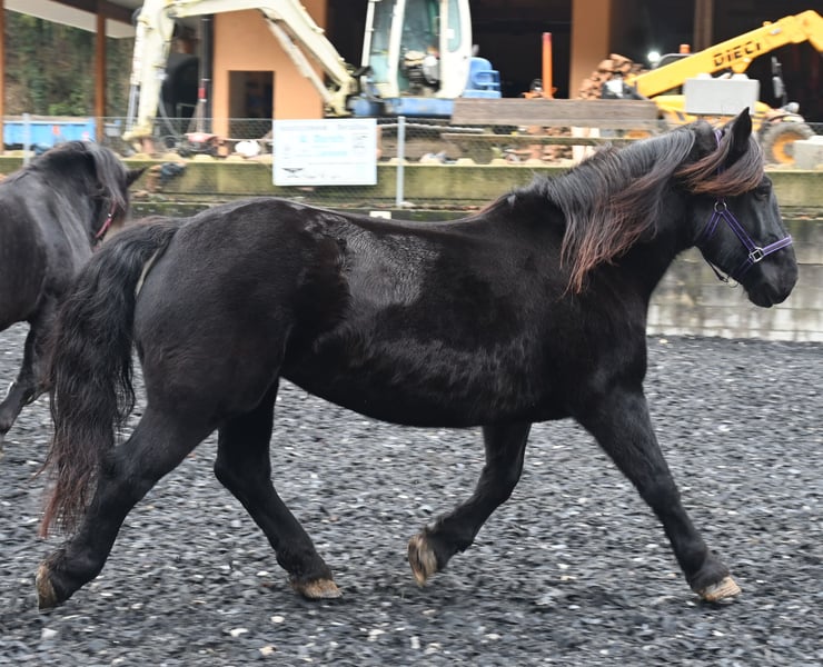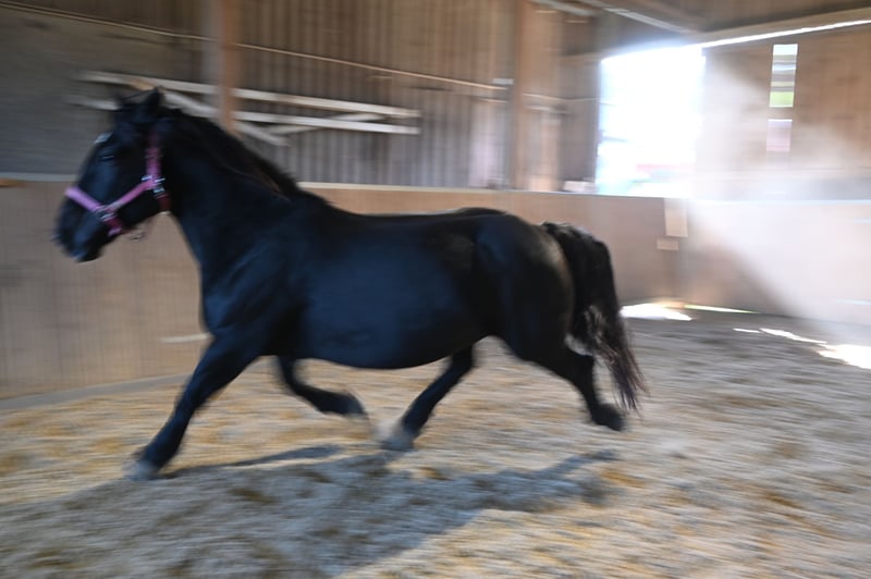 Miriam to 156-centymetrowa, przyjazna i dobrze wychowana czarna klacz rasy noriker. Jej temperament jest zrównoważony, a ona jest wolna od niegrzeczności. Urodziła się 04.03.2013 i była ujeżdżana i zajeżdżana w parach. Miriam jest zarejestrowana w księdze stadnej jako matka ogiera z 7,64 punktami i ma kilka źrebiąt. Meli, jej źrebię z 2023 roku, można obejrzeć na naszym podwórku. Miriam zna zarówno boksy, jak i otwartą stajnię. Jest przyzwyczajona do dzieci, psów, kotów i maszyn rolniczych. Dobrze zachowuje się u kowala, ma bose kopyta i bez wahania wsiada do przyczepy dla koni. Miriam jest regularnie odrobaczana i wolna od PSSM1. Jej ojcem jest ogier Schneider Vulkan 1b. MV: Pongau Elmar XIV