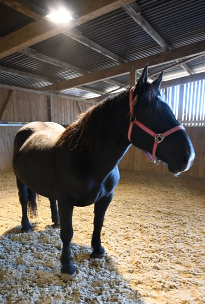 Miriam est une jument Noriker noire de 156 cm, amicale et douce. Son tempérament est équilibré et elle est exempte de vices. Née le 04 mars 2013, elle est montée et attelée en paire. Miriam a été enregistrée comme mère de étalon dans le livre des juments avec un score de 7,64 points et a eu plusieurs poulains. Meli, son poulain de 2023, peut être vu dans notre écurie. Miriam connaît aussi bien les boxes que le système de stabulation libre. Elle est habituée aux enfants, aux chiens, aux chats et aux machines de ferme. Elle se comporte bien chez le maréchal-ferrant, est pieds nus et monte sans hésitation dans le van. Miriam est régulièrement vermifugée et testée négative pour le PSSM1. Son père est l'étalon 1b Schneider Vulkan. Mère : Pongau Elmar XIV Nous serons ravis de vous présenter les chevaux du lundi au samedi. Il est possible de faire une séance d'essai sur le terrain ou en extérieur, ainsi que du longe et du travail à pied, afin de mieux connaître votre cheval de rêve. Cela coûte 40 € par séance et sera remboursé lors de l'achat. Les leçons de équitation réservées ne sont pas remboursables.