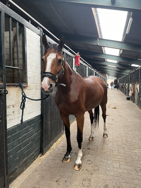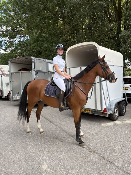 Good to read! Only suitable for experienced riders! Renzo is a sweet E-pony gelding, 18 years old, standing 15.3 hh. He loves attention, is eager to work, and very clever. Under saddle, he is well-behaved, but quite sensitive and energetic. I am looking for a rider who can handle that. If you sit correctly, ride softly, and stay in balance, you can have a lot of fun with him. However, if you are tense yourself, he can become anxious and become lively. He may start to trot, lift his head high, or, if you are not confident with aids and kick a lot, he might buck. Once you understand Renzo, you will have a very enjoyable pony. I occasionally take him to competitions, and if you are relaxed, he can really enjoy it too! He loads easily onto the trailer. If you develop a bond with him, you can even start a fun jumping round at 60/70 cm with him! He is still very energetic and well-muscled. Renzo is a very nice and easy pony from the ground up. You can do everything with him—decorating with streamers, balloons, nothing is too much. He learns tricks quickly; he is clever! When tied up, he can stand still for hours. He is also well-behaved on walks and, if you pick it up again, can join you on outdoor rides. Renzo has a mild form of sweet itch. When he wears an itch rug, there are no issues. He is simply sensitive to mosquitoes and flies. He comes with all accessories: a well-fitting saddle, bit, and horseware blankets, including an itch rug. Renzo is always well cared for. He has strong hooves and visits the farrier and osteopath annually. The dentist comes again in December. Please note: Renzo is not suitable to be outside 24/7. It’s best to stable him at night, especially in winter. He is a bit older, and otherwise, he might become underweight. Asking price €3,500 including accessories. We are looking for a loving 5-star home, not traders!