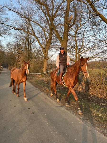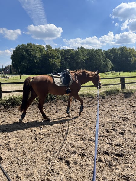 Seppl ist ein 4 jähriger NRPS Wallach. Er ist ein Menschenbezogener Kerl mit Tendenz zur Dickköpfigkeit. Seppl ist lieb im Umgang und mit anderen Pferden. Beim Putzen steht er ruhig gibt artig die Hufe und zeigt sich stets bemüht. Leider fehlt mir die Zeit ihm die nötige Aufmerksamkeit zu schenken um ihn weiter auszubilden. Aktuell ist er nicht geritten, kennt aber Sattel und Trense. Gearbeitet wurde er bislang ausschließlich an der Longe mit Gurt und Dreieckszügeln sowie etwas Freiarbeit vom Boden. Er ist kein Anfänger Pferd und nur in gute erfahrene Hände abzugeben. Hierbei gilt Platz vor Preis. Er hat eine Herzklappeninsufizienz welche ihn aktuell nicht beeinträchtigt. (Ein Bericht hierzu kann in der Klinik angefordert werden) Für weitere Infos stehe ich gerne per WhatsApp zur Verfügung.