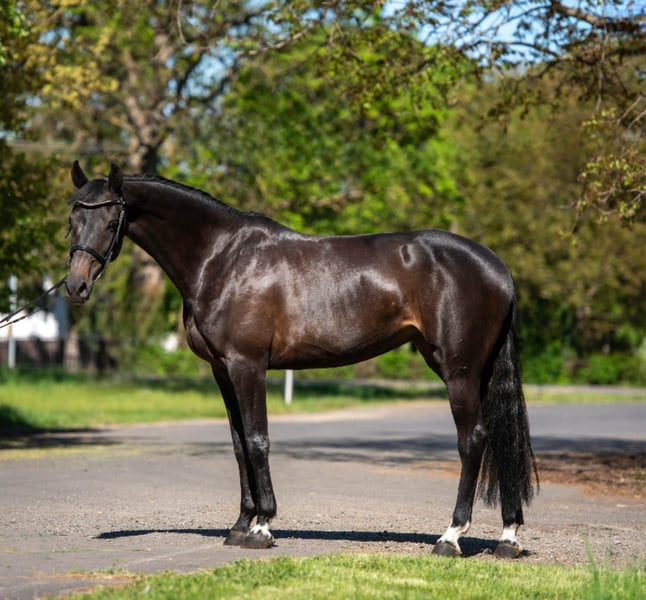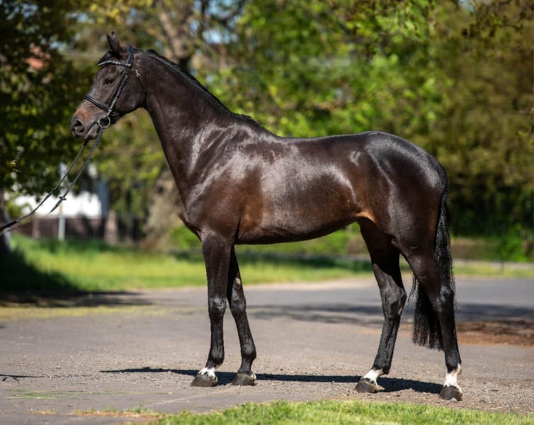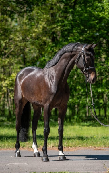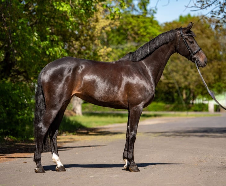 Breed: Sport Horse Gender: Mare Age: 9 years Height: 16.1 hh Color: Dark Brown Main Discipline: Show Jumping Additional Disciplines: Leisure Riding, Show Jumping A well-bred, well-trained mare in excellent health. Additional Features: - Versatile mare - Horse passport available - Purchase examination available Further Information: She is very easy to ride, as she is fearless, always calm and balanced, listens attentively to her rider, and executes instructions perfectly. She already has a solid foundation in show jumping. Her jumping ability is good. This truly well-bred mare is very friendly and gentle, making her an excellent choice for beginners. She is in perfect health in every respect and comes with up-to-date veterinary certificates. For more information, pictures, and videos, please contact us via WhatsApp or by phone. +49 176 40177894
