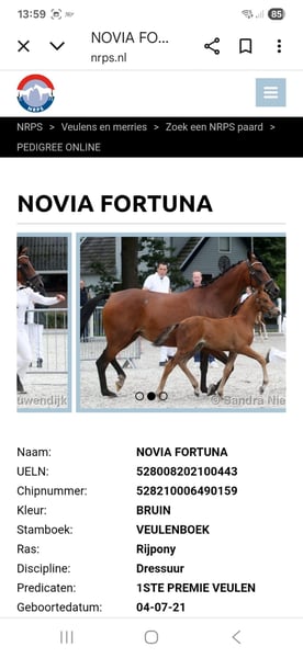 Interessante merrie voor de toekomst uit een uitstekende bloedlijn. Vader is Leuns Veld’s Winston Jr . Moeder is de Elitte merrie Nora Fortuna. Als veulen heeft ze op de Nationale keuring een 1ste premie behaald. Merrie is nog maar enkele maanden zadelmak en dient uiteraard nog doorgereden te worden. Merrie is te koop wegens inkrimping en er nog enkele veulens op komst zijn. Voor wie van een uitdaging en een winterproject houd is dit een oplossing. Voor meer gegevens of beschikbare filmpjes, kan via wattsap.