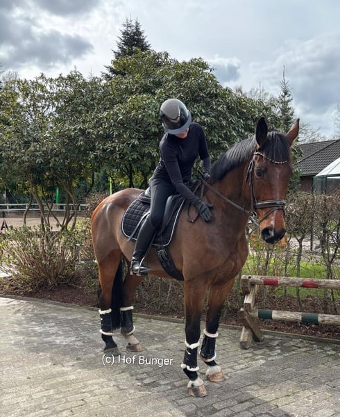 Zum Verkauf steht ein 11-jähriger Oldenburger Wallach, der die perfekte Balance zwischen Gelassenheit und sportlichem Anspruch verkörpert. Er ist der ideale Partner für Amateurreiter, Umsteiger, ambitionierte Freizeitreiter, Wiedereinsteiger oder Kinder. 🌟 Im Gegensatz zu vielen "Verlasspferden" ist "Mukki" alles andere als "büffelig". Er ist fein an den Hilfen, bewegt sich mit guter Qualität und möchte seinem Reiter stets gefallen.💫 🐴 Dressur: -leicht in Anlehnung -zeigt drei gute Grundgangarten und ist sitzbequem -A/L Dressur fertig 🐴 Springen: -Er taxiert gut, hilft seinem Reiter und ist im Parcours absolut sicher, übersichtlich und gelassen. -A platziert mit Amateurin -A/L Niveau im Training 🐎 Charakter: Ein wahrer Fels in der Brandung! 🫶 Egal ob im Gelände, auf dem Turnierplatz oder im täglichen Handling – er ist bombensicher. Er kennt keine Unarten, ist schmiede- und verladefromm und zeigt sich auch in fremder Umgebung völlig unbeeindruckt. Er verzeiht Reiterfehler und gibt seinem Reiter in jeder Situation ein sicheres Gefühl. So meistere er schon viele Ausritte und auch sogar einen St. Martin Umzug. Ein Pferd mit Herz und Qualität, das sofort im Turniersport eingesetzt werden kann oder als luxuriöses Freizeitpferd seinen neuen Besitzer glücklich macht. 🩶🤍🤎 🔆 Guter TÜV mit Röntgenbilder und klinischer Untersuchung liegt vor (März 2026). 🏡Wir wünschen uns eine Art Offenstallhaltung für ihn. 👋Video und weitere Infos gerne per WhatsApp nach kurzer Beschreibung zu ihrem gesuchten Pferd.