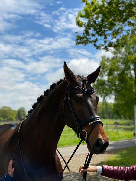 Offering this beautiful and well-behaved gelding on behalf of the owner. Filou is 11 years old, stands 1.74 meters at the withers, and is very friendly and people-oriented. He is well-trained in dressage and consistently behaves well, showing a good level of motivation that requires a rider with appropriate skill and fitness. In addition to daily dressage work, he is familiar with pole work and riding on the racetrack. He has competed successfully up to the advanced level in show jumping, although he has not been actively competed in recent years. During the day, he is kept on a paddock, and at night, he stays in a stable. A 2023 X-ray examination report is available. He has been in the owner’s possession since foalhood. A long-term, loving home is especially important, and in this case, quality takes precedence over price. A video can be sent via WhatsApp upon request. For further questions, please contact us by phone at 0162-7024467. Please note that messages are answered slowly!