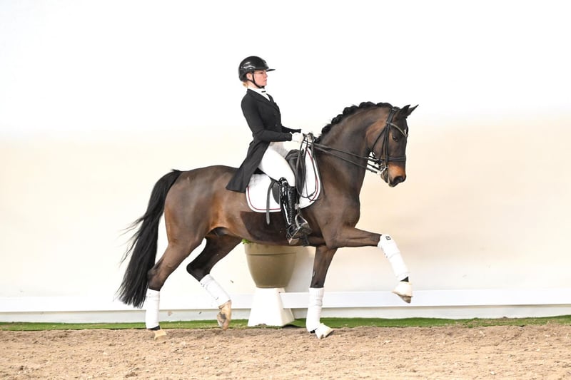 Salut combines proven genetics, experience, and exceptional rideability in one horse. This 12-year-old gelding offers all the qualities expected from a well-trained dressage horse at an advanced level. From a pedigree perspective, he unites three of the most influential sires in modern dressage breeding: Sir Donnerhall I, Rubinstein I, and Werther. For generations, this combination has stood for rideability, willingness to perform, and reliability—qualities that are clearly reflected in Salut. In competition, Salut demonstrates proven performance: successful up to advanced level (S***), he presents himself as a confident and composed partner with a secure command of all movements. A horse that consistently instills confidence in his rider while always thinking along. Particularly noteworthy is his rideability: naturally uphill, with excellent balance and a consistent, elastic contact, he offers an expressive yet harmonious picture under saddle. His work ethic, experience, and reliability make him an ideal partner for ambitious riders. A charming and experienced gelding who combines performance, rideability, and character at the highest level. A true schoolmaster with quality—ready to guide his next rider to success.