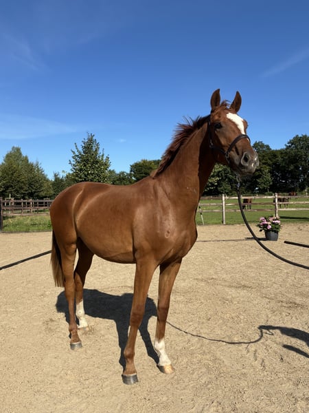 Sam Sam ... a fantastic 2-year-old gelding from one of the best dam lines in Oldenburg. His mother Florell was a 1d Brilliantring mare in Rastede with an excellent SLP. In combination with Blue Hors First Choice, she produced the Westphalian premium stallion Fürst Romanov, who is now successful at Grand Prix level in the USA. Additionally, she has also produced several Radtede mares, including Florelia by Blue Hors Touch Me, which is also in our breeding program. His grandmother Fiesta's Girl has produced several licensed and sport-successful stallions and is a full sister to Don Schufro! Sam Sam received the Oldenburg foal premium and stands in a medium frame with a very correct foundation and three top basic gaits. He comes from our breeding, has grown up in a herd environment, yet has always been handled and is people-oriented. Anyone looking to secure a true rough diamond will find a great sport partner in Sam Sam. For more information, please feel free to contact us at 01749049299.