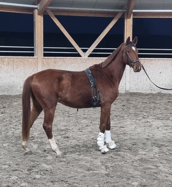 This handsome young man will soon be 2 years old and has a heart of gold. He was raised with me in the Hit Aktivstall in a mixed-age group of young horses. He was gelded at the end of January 25. Final height approximately 168-172cm. He is sure to become a great amateur horse as he is very people-oriented and has a wonderfully gentle temperament. He already loads well into the trailer and stands calmly during transport. He is also familiar with the horse walker. His sire is Escaneno, and his dam is by Depardieu. Pedigree see pictures. For sale due to downsizing to a loving home. Location near Karlsruhe - Southern Germany.