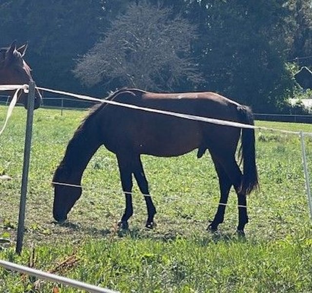 Dunkelbrauner Dressurwallach – 3 Jahre – Aus eigener Zucht Zum Verkauf steht ein beeindruckender, 3-jähriger Wallach in edlem Dunkelbraun aus eigener Zucht. Dieser junge, aufstrebende Sportpartner vereint moderne Dressurgenetik mit viel Ausstrahlung, Qualität und Zukunftspotenzial. Abstammend vom dressurstarken Morricone und Quaterman, überzeugt er mit einer exzellenten Veranlagung für den großen Dressursport. Seine Mutterlinie ist zudem geprägt von dem bedeutenden Vererber Rohdiamant, was diese Linie besonders interessant macht. Diese hochkarätige Blutführung garantiert eine erstklassige Dressurabstammung, die nicht nur Züchterherzen höherschlagen lässt, sondern auch ambitionierten Reitern die besten sportlichen Perspektiven eröffnet. Der Wallach besticht durch: • Harmonisches, modernes Exterieur • Korrektes Fundament und gute Hufe • Drei sehr gute Grundgangarten mit natürlicher Balance • Intelligentes, menschenbezogenes Wesen • Beste Voraussetzungen für die weitere Ausbildung in der Dressur • Interessant für Sport und Zucht dank wertvoller, selbst gezüchteter Genetik Als selbst gezogener Wallach wurde er von Beginn an sorgfältig aufgezogen und kennt den Umgang mit Menschen. Er ist zutraulich und unerschrocken. Ein Dressurtalent mit überzeugender Abstammung und klarer sportlicher Perspektive – ideal für alle, die einen jungen Wallach mit Qualität suchen, um ihn selbst auszubilden oder ein wertvolles Zuchtprojekt zu ergänzen.
