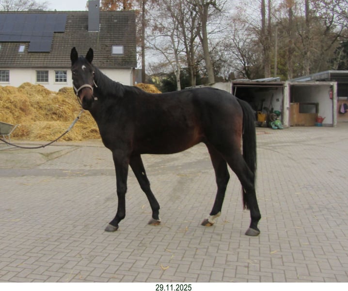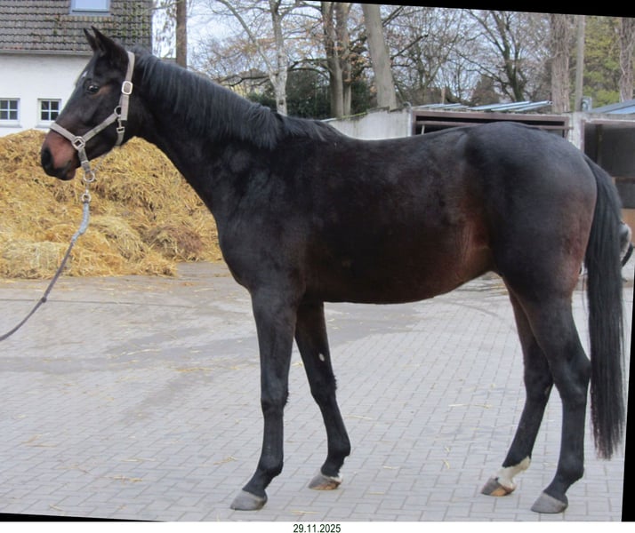 Dieser dunkelbraune Oldenburger Wallach, jetzt 2,5 Jahre alt, ist draußen aufgewachsen in einer Jungsgruppe und wurde aufgestallt im November 2025. Geimpft gegen Influenza und Tetanus , entwurmt, Wolfszähne sind entfernt, war regelmäßig beim Hufschmied Er hat der Abstammung entsprechend sehr gute Grundgangarten und wird wohl ca. 170 cm bis 175 cm groß. Das Pferd ist sehr menschenbezogen und angenehm im Umgang.