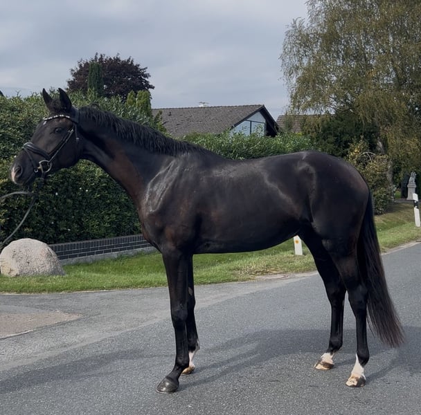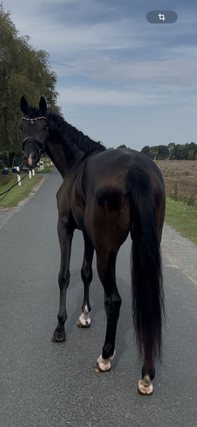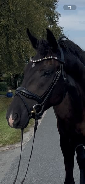 For sale: Young Oldenburg gelding – Perfect for dressage! We are offering a stunning black gelding, born in 2022. Standing at 16.1 hh, he presents an impressive appearance and great potential. As an Oldenburg, he boasts a solid pedigree and excellent basic qualities. The gelding is ideally suited for dressage and already demonstrates significant talent and elasticity. He is friendly in handling, healthy, regularly vaccinated and dewormed. He also shows curiosity yet remains calm when in the arena, on unfamiliar grounds, or in new environments. If interested or for further information, please feel free to contact me. A personal meeting can be arranged at any time. A recent TÜV report, including neck and back, is available. Dwayne comes from our own breeding and has been raised with love and patience. He is a very well-behaved and talented gelding who always stands out positively due to his appearance. I look forward to hearing from you! Other horses (jumping/dressage) available upon request! Please contact me exclusively via WhatsApp. 0176 2776762 Thank you!