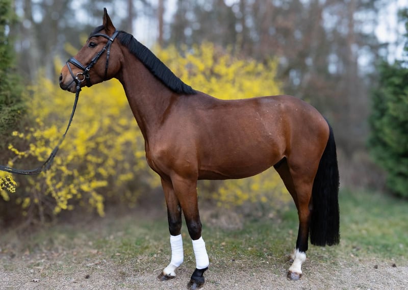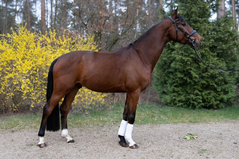 ... no ifs or buts! For sale is a 4-year-old bay Oldenburg gelding by San Amour I, out of a Don Schufro mare, with good basic gaits. He has been trained in a manner suitable for young horses and is comfortable to sit. He has already been ridden in the field and has experienced a few show jumping courses. If you're looking for a clear-headed, versatile partner with potential, he's the perfect match! He has an excellent TÜV X-ray with no findings.